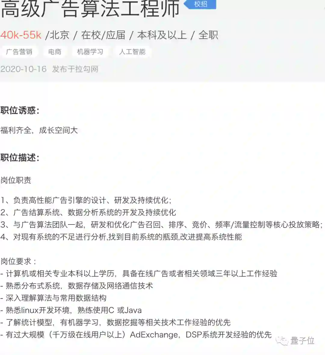 但是,相应职位是高级算法岗,对应聘者能力要求较高。