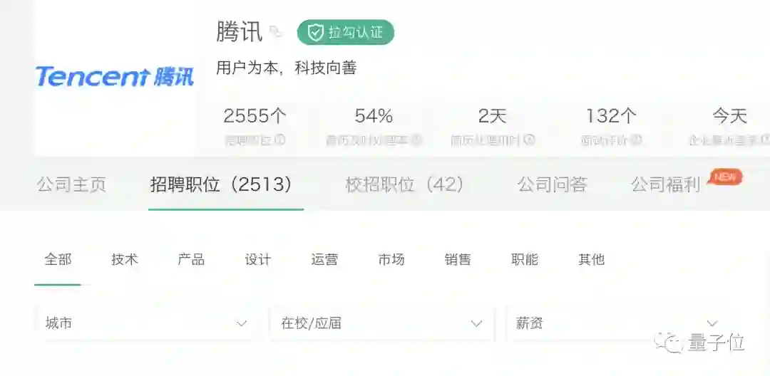 而腾讯,在拉勾网上已经找不到技术向的校招岗位。