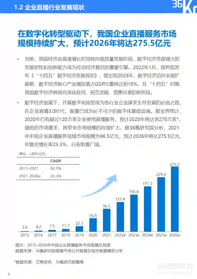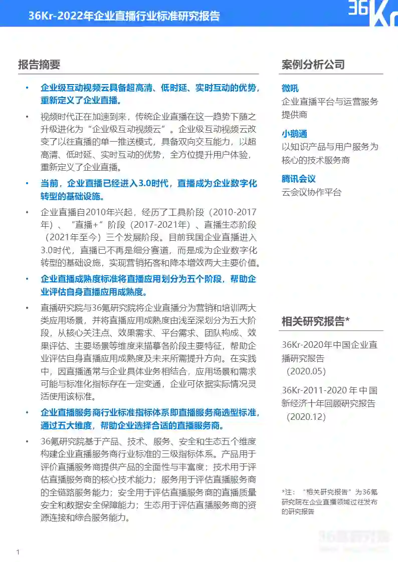更多精彩内容,请关注“36氪研究”微信公众号。如想获取《2022年企业直播行业标准研究报告》,点击文章底部【阅读原文】,提取码:xrj8,或在36氪研究院微信公众号上回复“企业直播”获取下载链接。