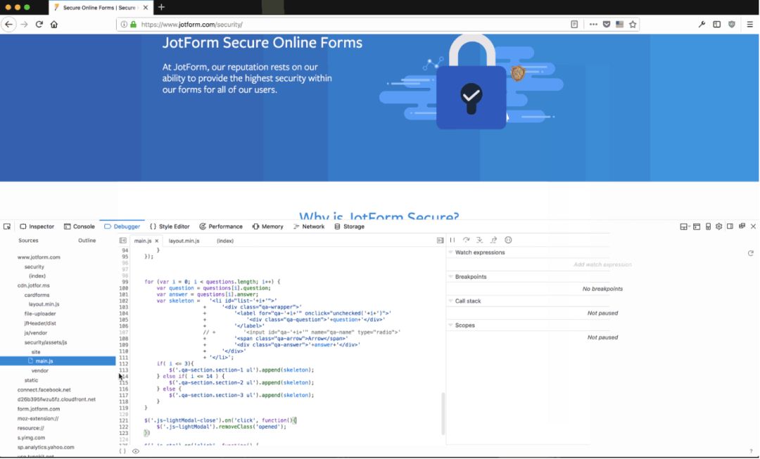 考虑到 Firefox 在上述领域的举措,你肯定也能猜到,DevTools 也包含了诸多的改进。Debugger.html 就是其中之一。最棒的改进呢?Debugger.html 已成为托管在 GitHub 上的开源项目,因此任何人都可以做出自己的贡献。