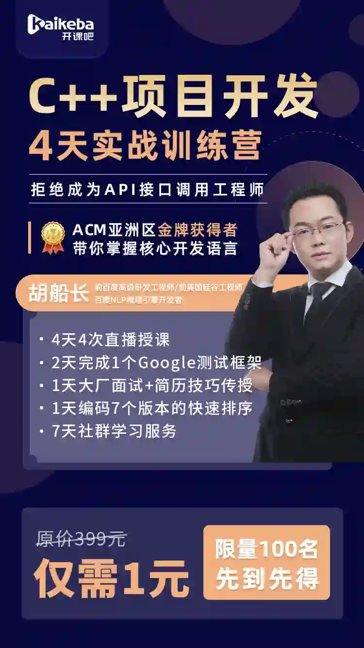 你现在长按识别上方二维码或点击阅读原文,即可了解课程详情或直接抢占 1 元优惠名额,快速掌握 C++ 核心知识。