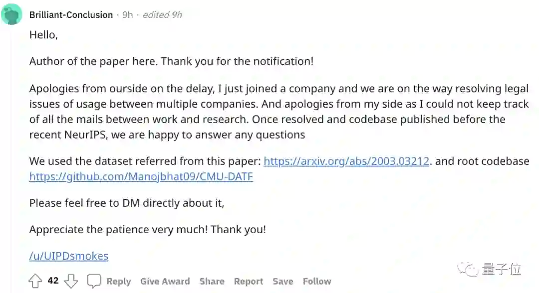 他首先道歉,表示自己刚刚进入一家公司工作很忙,没有及时跟踪到这篇论文的邮件。