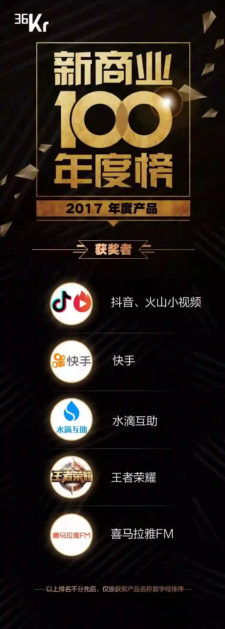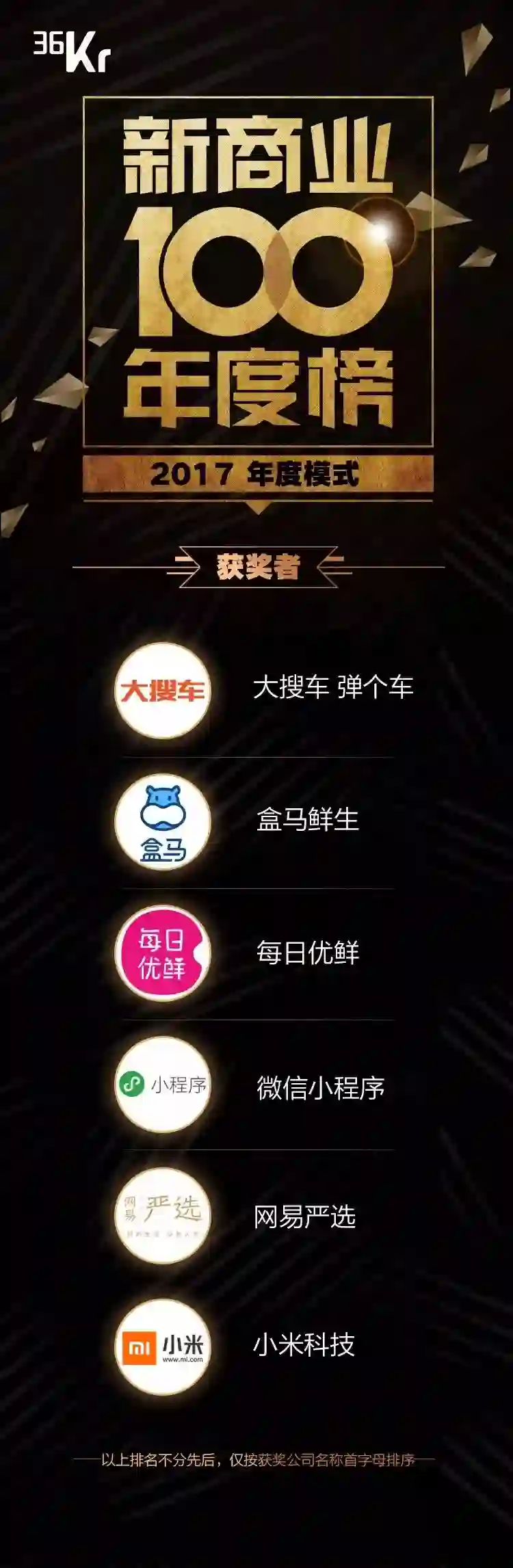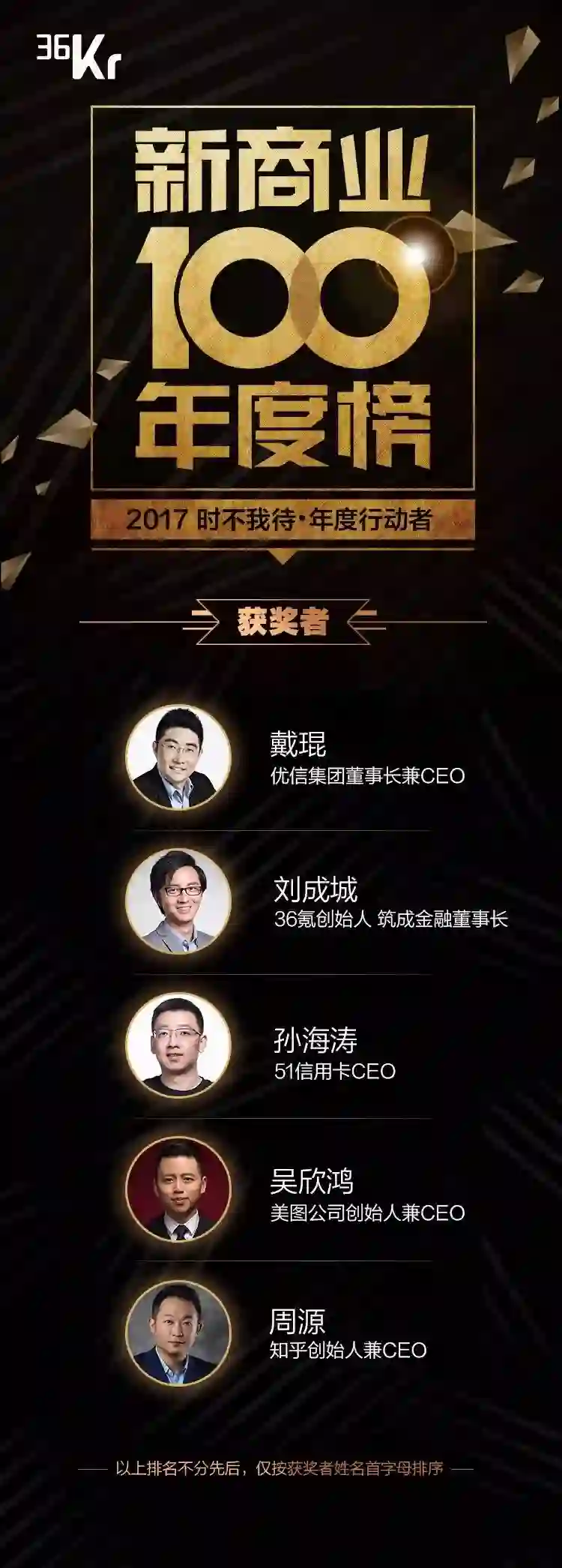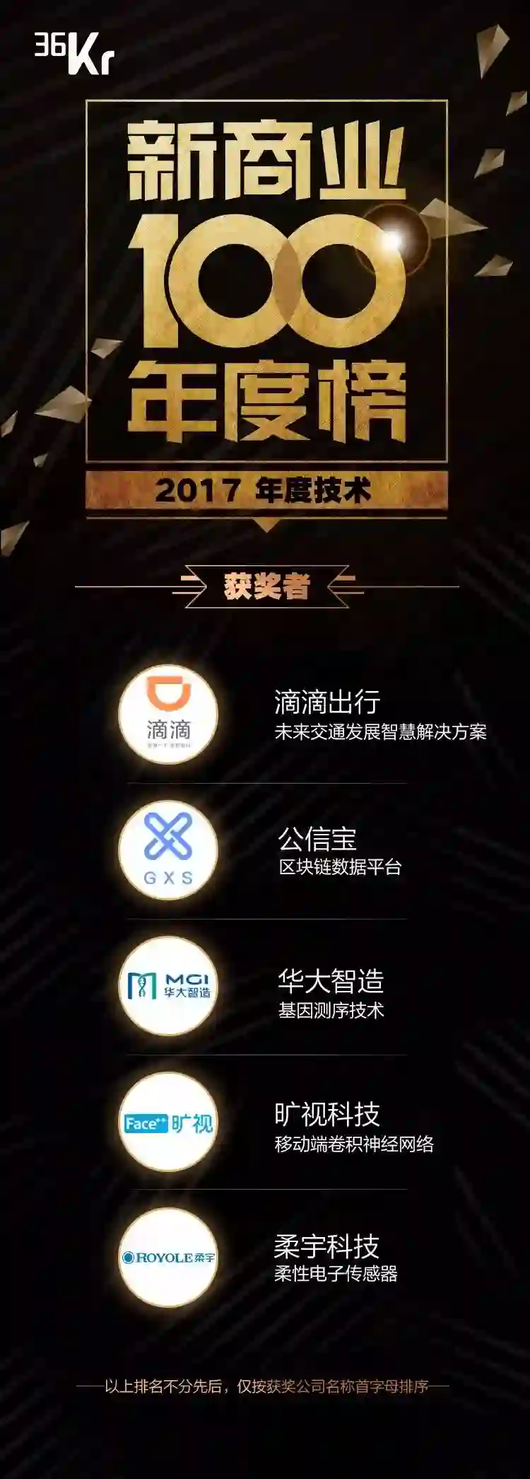 2017年12月12日,第五届36氪WISE2017新商业大会在北京举行。会上, 36氪2017「新商业100年度榜」之创新力奖项正式揭晓。