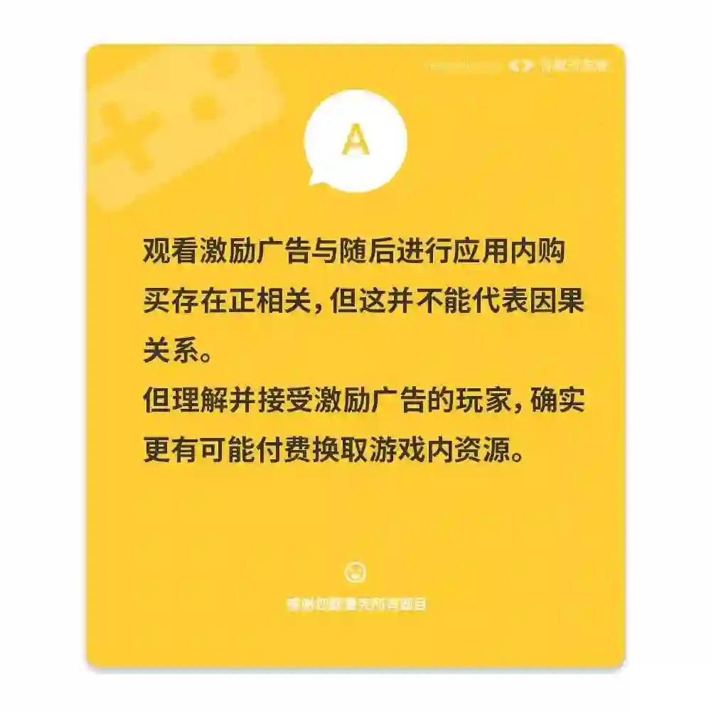 Kongregate 发现,在他们旗下的 6 款游戏中,在第一次游戏过程中观看广告的人,随后进行应用内购买的可能性是对照组的 2.5 到 5 倍。这并不是说观看广告会导致*人们决定应用内购,而是说,那些理解并接受激励广告价值主张的玩家——他们愿意用自己的时间交换游戏内的货币或资源——更有可能付费换取游戏内资源。