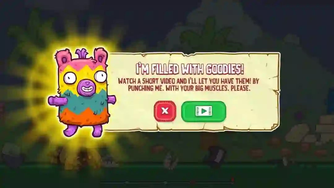 在 Animation Throwdown 发布后不久,Burrito Bison (公司旗下游戏组合中的一款偏向休闲玩家的游戏) 提供了一种新型广告单元: piñata,也就是随机掉落的 “广告宝箱”。