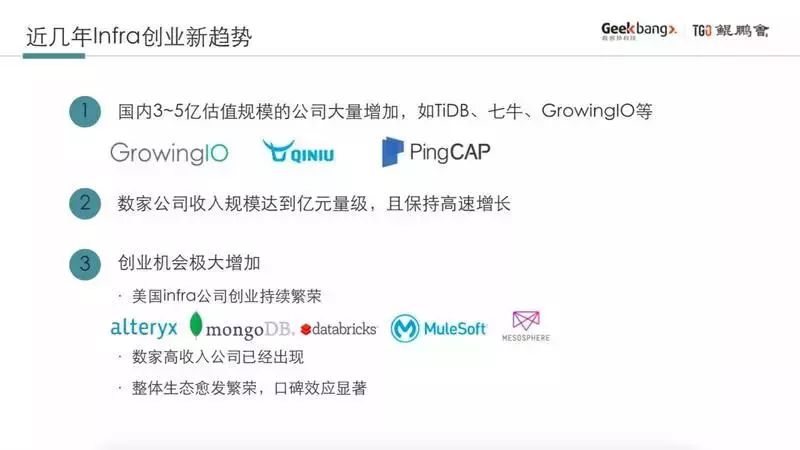 如何把握住 Infra 创业新趋势,熊飞先生主要从以下 3 个趋势来进行分析: