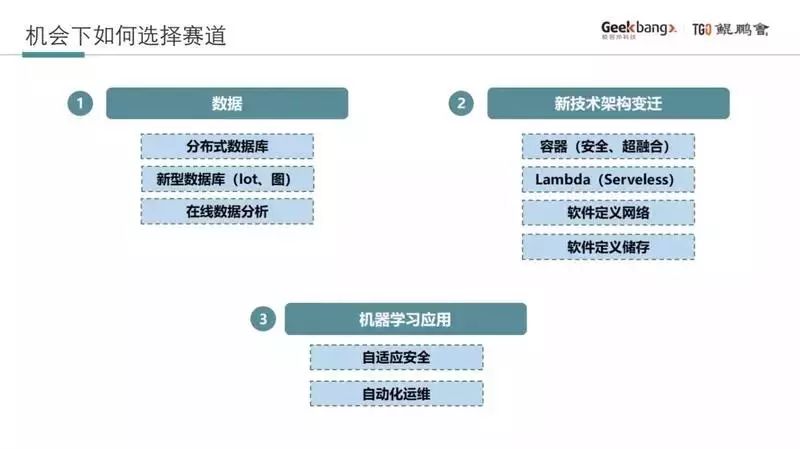 包括自适应运维和自适应安全。由于数据越来越多上云端,那么在这样的时代下做安全的创业,也是一个顺应时代的选择。