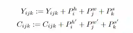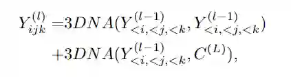 基于3DNA,文中还引入了3D encoder-decoder,能够在条件矩阵Y 为h'×w'×s'×d^{in}的情况下,生成h×w×s×d^{out} 的目标矩阵C,其中Y和C由三个不同的词典分别考虑高度,宽度和时序维度。