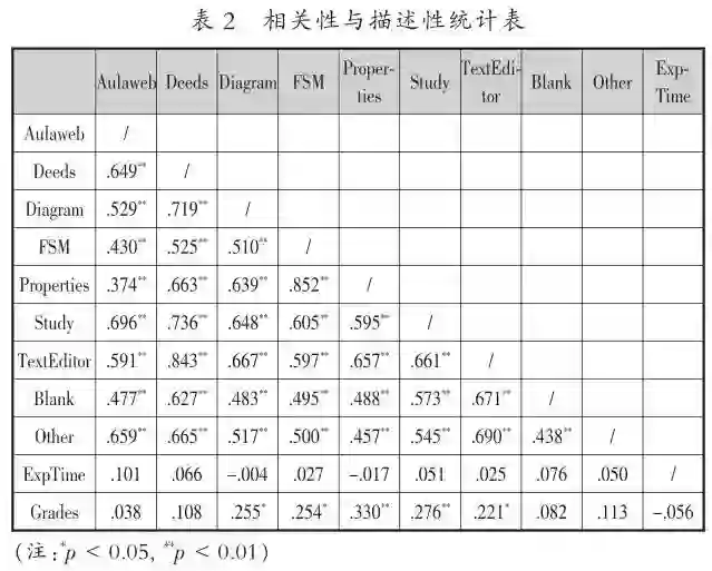 首先,本研究采用描述统计、相关分析等方法对学习者学习行为、实验模拟时间以及学习成绩分布情况和各变量之间的相关关系进行探索。