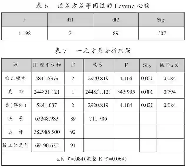 最后,采用一元方差分析方法,将分组结果作为自变量,将学习成绩作为因变量,探究群体学习行为模式与学习效果的之间关系。