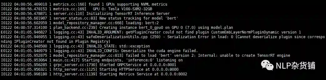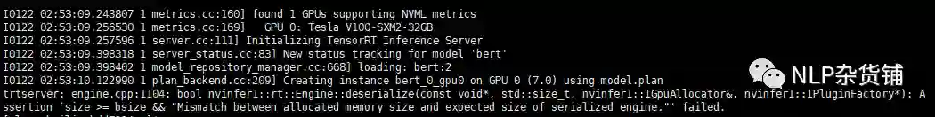 直接一个报错"trtserver: unrecognized option '--model-repository=/models'",根据提示,将参数名"--model-repository"改为了"--model-store",然后再运行,就得到了又一个错误:
