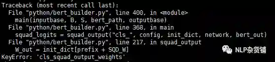 报错表示,参数中没有一个叫"clssquadoutput_weights"的,demo是squad的一个样例,而我的是二分类下游任务,最后输出层参数名称不一致,根据上面打印的参数名字(不同的下游任务或者训练代码,最后层的参数名字都可能不同),将217/218行代码修改为: