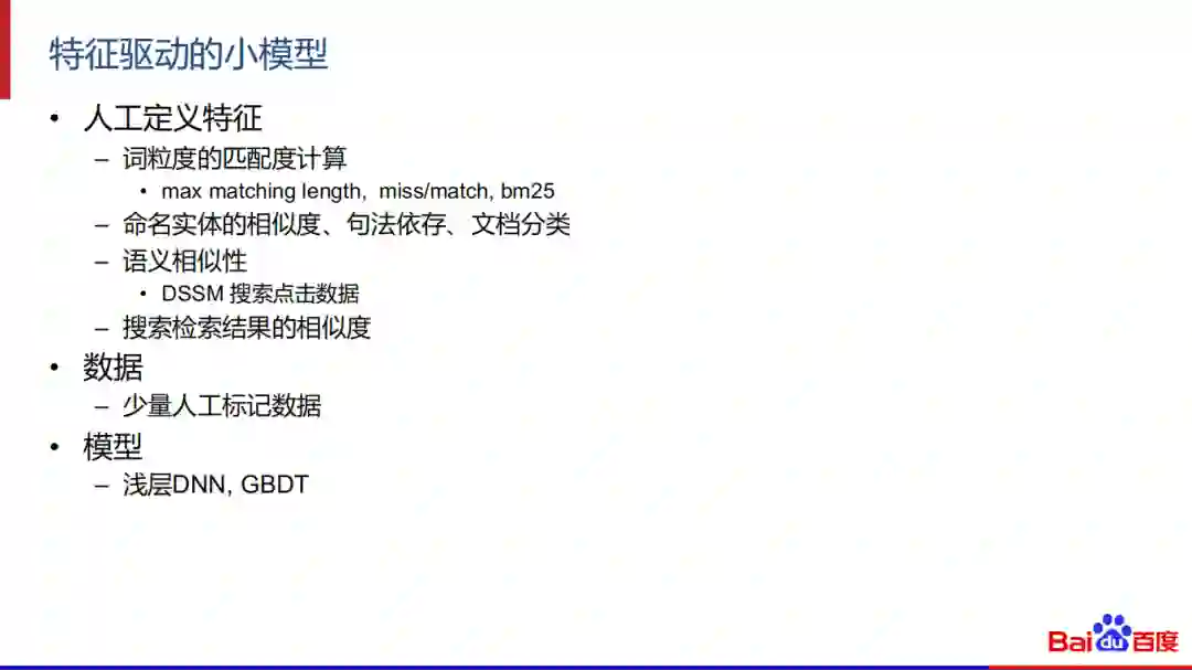 在数据方面,需要少量的人工标记数据。模型一般是是浅层DNN和GBDT之类的树模型。