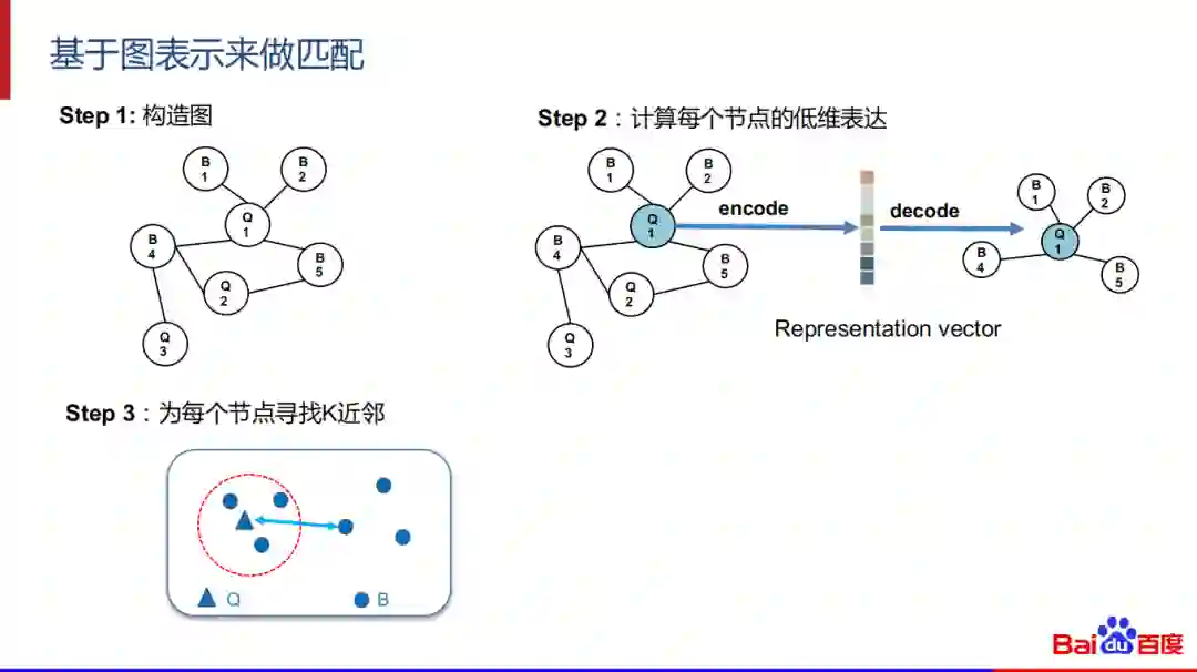 基于图表示来做匹配分为三步走:第一步是构造图,其次是计算每个节点的低维表达,最后是为每个阶段寻找K近邻。