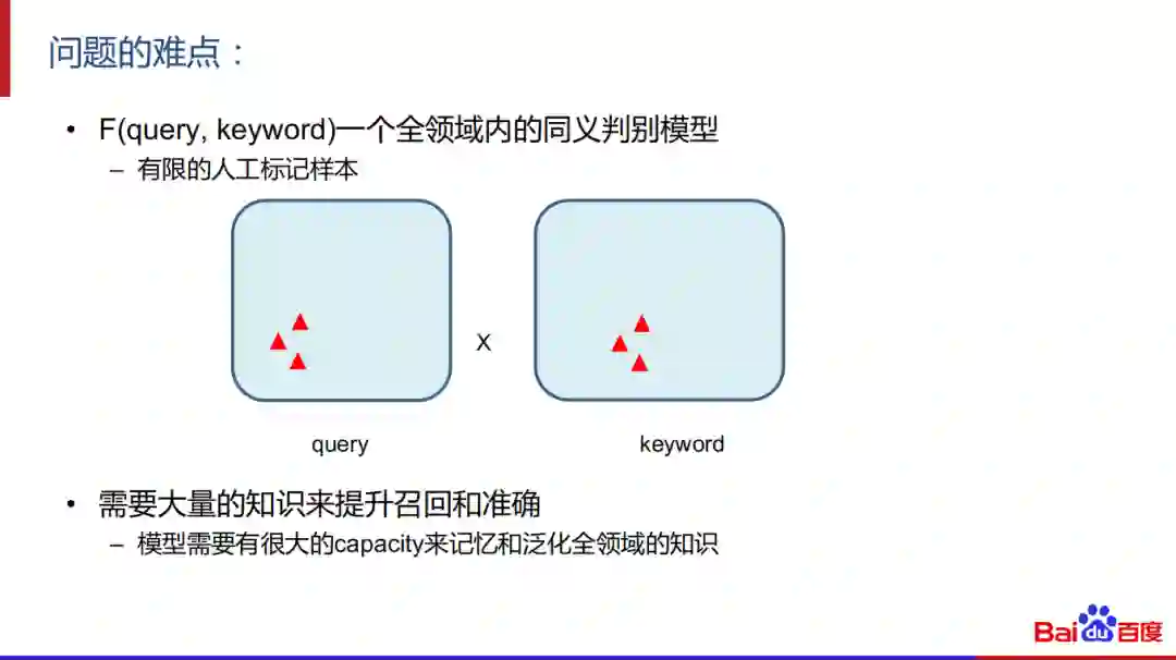 工程性能:可扩展性,由于query和关键词的量都非常大, 无论在线还是离线,计算资源都非常有限,这给很多功能实现带来了挑战。