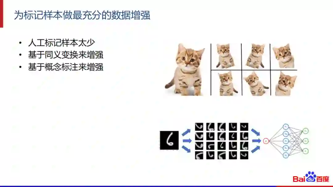 刚刚提到为标记样本做最充分的数据增强,增强技术在图像中使用较多,在NLP中使用较少,可以基于同义变换来增强,另外可以使用概念标注来进行增强。
