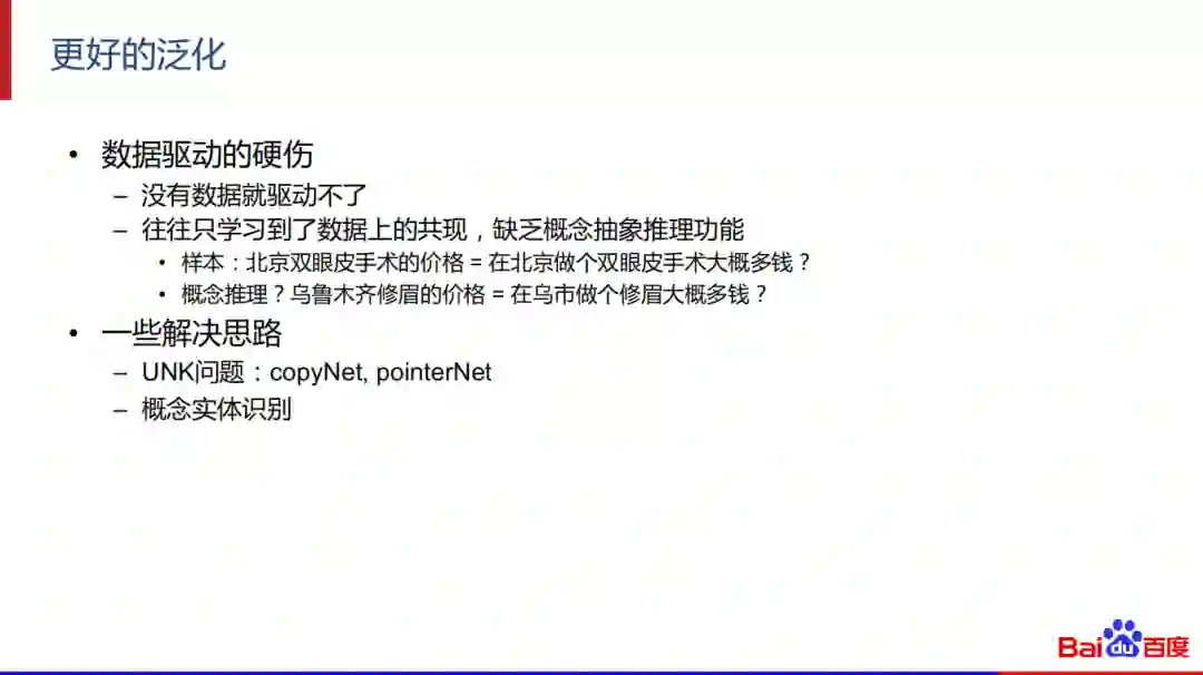 解决的思路有UNK问题,使用copyNet和pointerNet。还可以做一些概念实体识别的事情如下图所示: