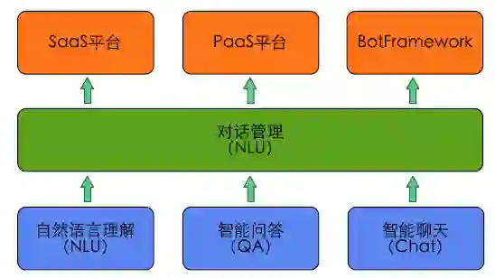 典型的智能对话交互框架如图 1 所示。其中,语音识别模块和文本转语音模块为可选模块,比如在某些场景下用户用文本输入,系统也用文本回复。自然语言理解和对话管理是其中的核心模块,广义的自然语言理解模块包括对任务类、问答类和闲聊类用户输入的理解,但在深度学习兴起后,大量端到端(End-to-End)的方法涌现出来,问答和聊天的很多模型都是端到端训练和部署的,所以本文中的自然语言理解狭义的单指任务类用户输入的语义理解。在图 2 所示的智能对话交互核心功能模块中,自然语言理解和对话管理之外,智能问答用来完成问答类任务,智能聊天用来完成闲聊类任务。在对外输出层,我们提供了 SaaS 平台、PaaS 平台和 Bot Framework 三种方式,其中 Bot Framework 为用户提供了定制智能助理的平台。