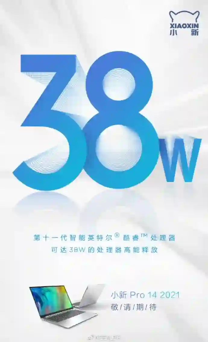联想小新 Pro 14 2021 采用第十一代英特尔酷睿处理器,可达 38W 的处理器高能释放。