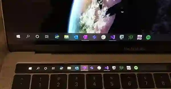 据新浪科技报道,有开发者在为 MacBook Pro 刷入 Windows 10 操作系统后,发现了将 Touch Bar 改造为可触摸任务栏的办法。使用 BootCamp 安装启动 Win10 ,借助了 iBridge Virtual FrameBuffer 驱动、微软 Common Class Generic Parent 驱动等,因为 Windows 不支持 2170 x 60 的显示分辨率,需要强行把高度修改为 100px 。