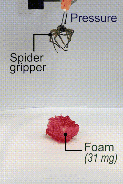 而研究人员用蜘蛛尸体做的「机械手」,实际上就是用外部气压变化取代了蜘蛛主动地血淋巴压力调节机制。