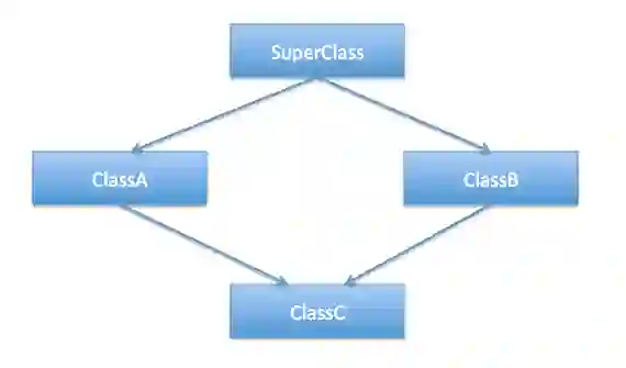 如果有两个类共同继承(extends)一个有特定方法的父类,那么该方法会被两个子类重写。然后,如果你决定同时继承这两个子类,那么在你调用该重写方法时,编译器不能识别你要调用哪个子类的方法。这也正是著名的菱形问题,见下图。