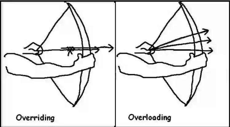 重载的两个方法名相同,但方法参数的个数不同,另外也不涉及到继承,两个方法在同一个类中。就好像类 LaoWang 有两个方法,名字都是 read(),但一个有参数(书名),另外一个没有(只能读写死的一本书)。