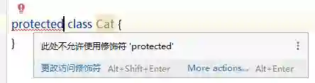 假如硬要通过 private 和 protected 来修饰类的话,编译器会生气的,它不同意。