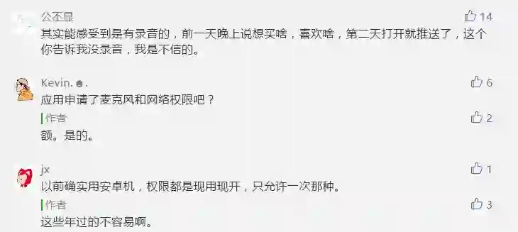 该专家还表示,新闻报道中,通过聊天测试并联想到外卖App窃听用户语音,“这种证明方法完全不科学”,存在偶合性;科学的方法应该是做软件行为分析和数据流量分析,而不是做用户行为统计。
