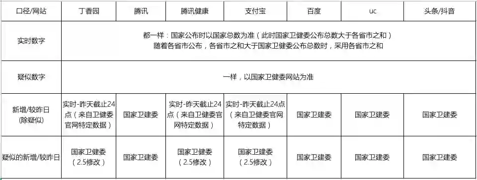 体现在疫情地图上,各家的数据维度相似而又不尽相同。
