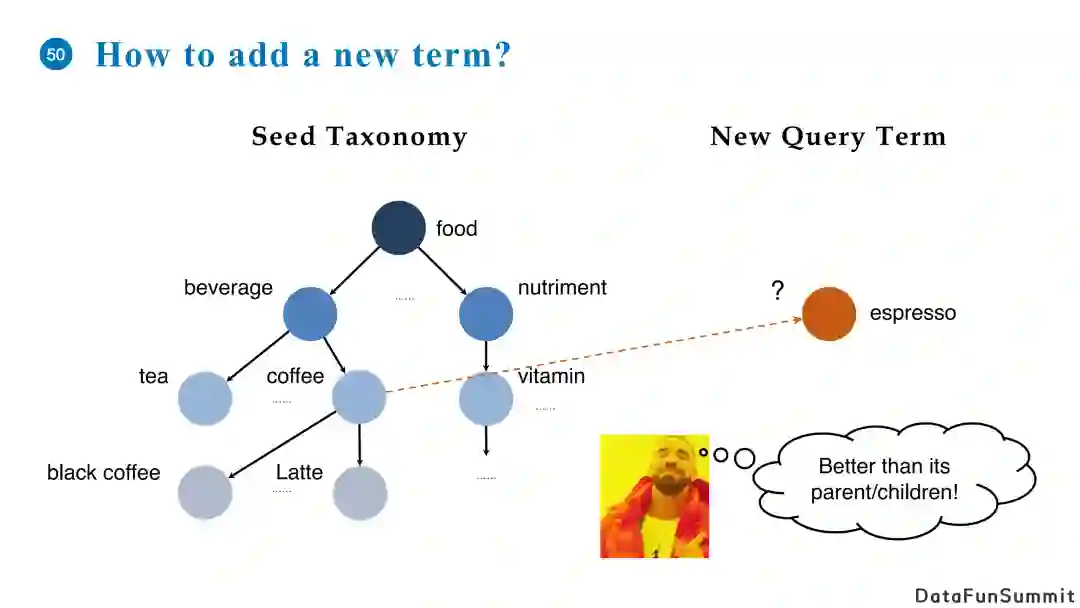 另外一个问题是如何将新的query词语插入至现有的本体结构中。我们在今年WWW2021会议中发表的工作重点探讨了这一问题,这里我只简要描述一下其中的概念。