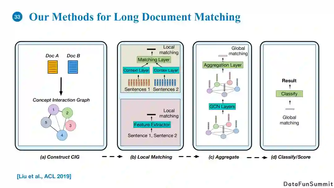 第二步local matching,我们会对每一个节点中来自于两篇文章的句子进行文本匹配。这里的匹配算法可以复用传统的短文本匹配算法。