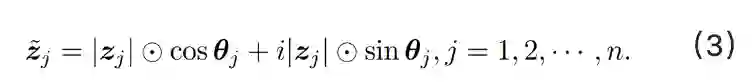 其中 i 是满足 i^2 = -1 的虚数单位,|·| 表示绝对值运算,⊙是逐元素乘法。幅值 |z_j| 是实值的特征,表示每个 Token 所包含的内容。θ_j 表示相位,即 Token 在一个波周期内的当前位置。