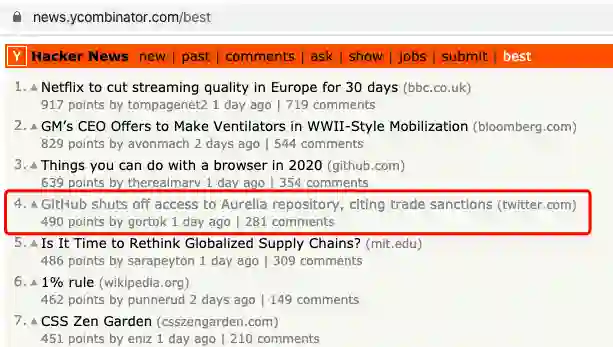 在昨天,「GitHub 以贸易制裁为由,关闭了对 Aurelia 库的访问」冲上了 Hacker News TOP 榜,其中,既有项目负责人的一头雾水,也有诸多开发者的质疑。