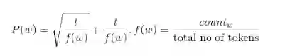 图二 t为所选阈值,f(w)为单词w的出现频率