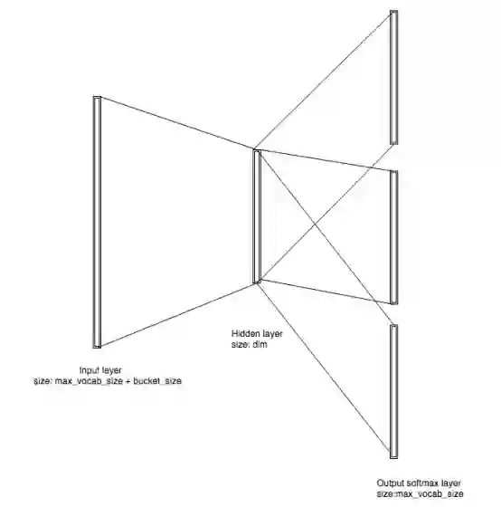 如果我们用-pretrainedVectors参数初始化训练,输入文件中的值将被用于初始化输入层向量。如果未指定,一个维度MxN的矩阵将会被创建,其中M = MAX_VOCAB_SIZE + bucket_size, N = dim。 bucket_size是一个数组的长度大小,这个数组是为所有的ngrams符号分配的。它通过-bucket标志进行设置,默认设置为2000000。