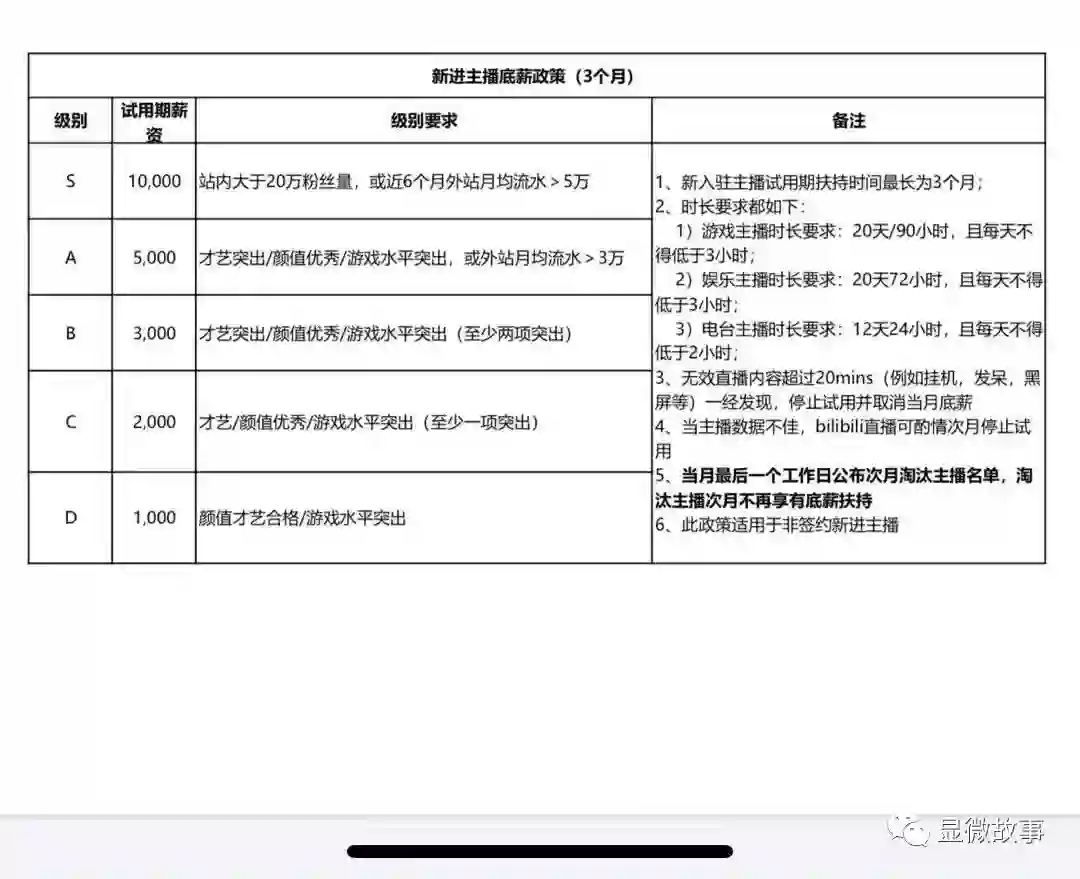 B站大于20万粉丝新主播的底薪为1万元,试用期三个月