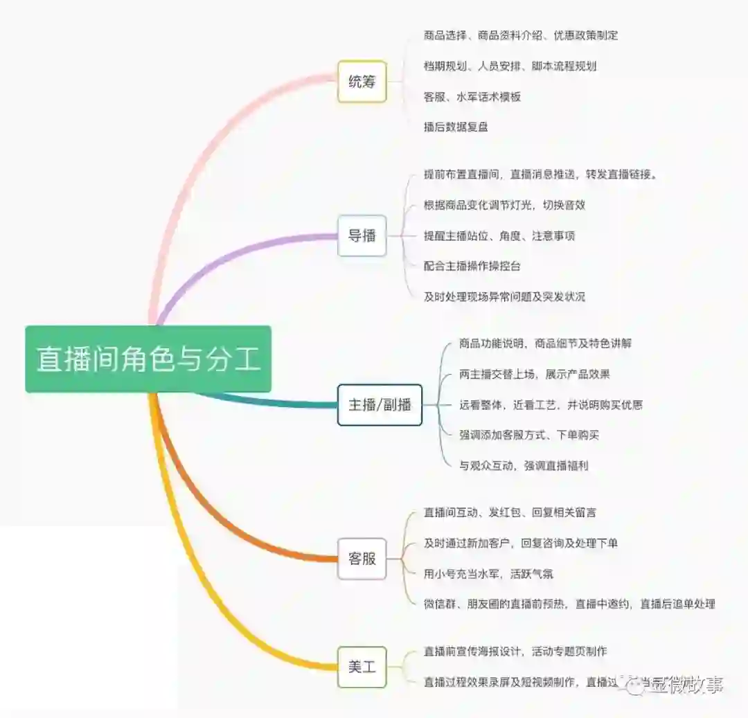 对特别关注的IP型主播,每两位分配一个运营人员(文案、策划、编导),一位剪辑和摄像;外跟两位助理,参与摄像、剪辑、运营等随机协助的日常工作。紧接着,商务部拓展市场,实现快速变现。