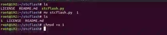 解压之后会有一个名为stcflash 的可执行脚本。我把她重新命名了一下,为了方便我直接把他重新命名为1。