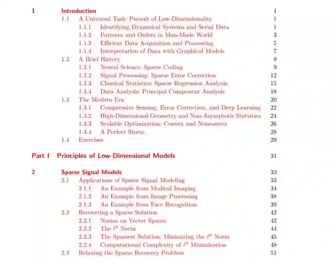 本书涵盖了用于高维数据分析的新的数学原理(统计学与几何学)、可扩展(凸与非凸)优化方法以及一些重要的应用(例如科学成像、宽带通信、人脸识别、3D 视觉和深度网络等)。本书将用作数据科学、信号处理、优化和机器学习领域的入门级研究生教材,它已经被用于 EECS 290(加州大学伯克利分校)和 ELEN 6886(哥伦比亚大学)两门课程。