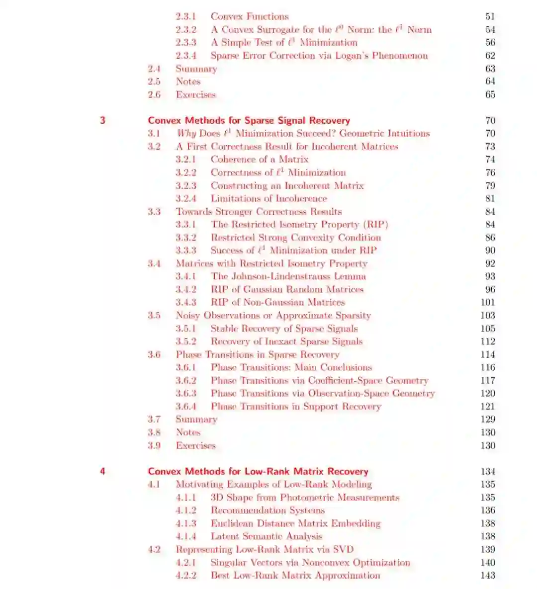 计算部分介绍了凸优化和非凸优化的方法,以开发适用于恢复低维模型的实用算法。这些方法展示了如何系统地提高算法效率并降低总体计算复杂度,从而使生成的算法快速且可扩展至大规模高维数据。