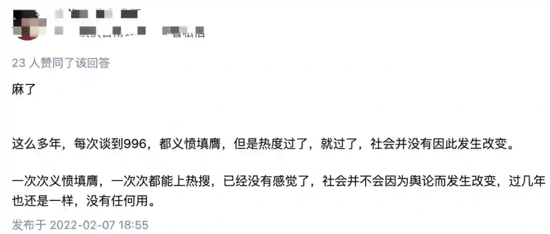这么多年,每次谈到996,都义愤填膺,但是热度过了,就过了,社会并没有因此发生改变。