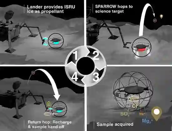 这是对推进跳跃机器人在冰冷、崎岖的海洋世界中实现高科学价值目标能力进行的新研究。跳跃模式的使用可以进行长距离的快速穿越,使单个任务能够在特定时间范围内到达多个地质单元,从而在恶劣的辐射环境中使系统得以生存下来。此外,使用推进跳跃技术可以消除地形的限制。这个概念的具体目标将通过世界领先的机器人、推进、样本采集工程师,以及来自喷气推进实验室、普渡大学和Honeybee Robotics的行星科学家通过跨学科合作来完成。