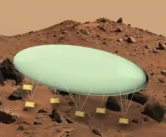 这个概念实际上是个气球平台,每个装有6个悬挂模块,每个模块包含一个有效载荷,也可作为移动的脚。每只脚被3根缆绳悬挂在气球上,以控制脚在地面上的位置。只有一个有效载荷被举起来移动到地面上的新位置,而其余的脚则保持气球固定在地面上。气球浮力只需要每次提升1英尺,脚按顺序在地表移动。这个平台高度稳定,因为它的重心几乎都在地面上。气球上的摄像头图像可被用来绘图,并用来定位脚的位置和导航。