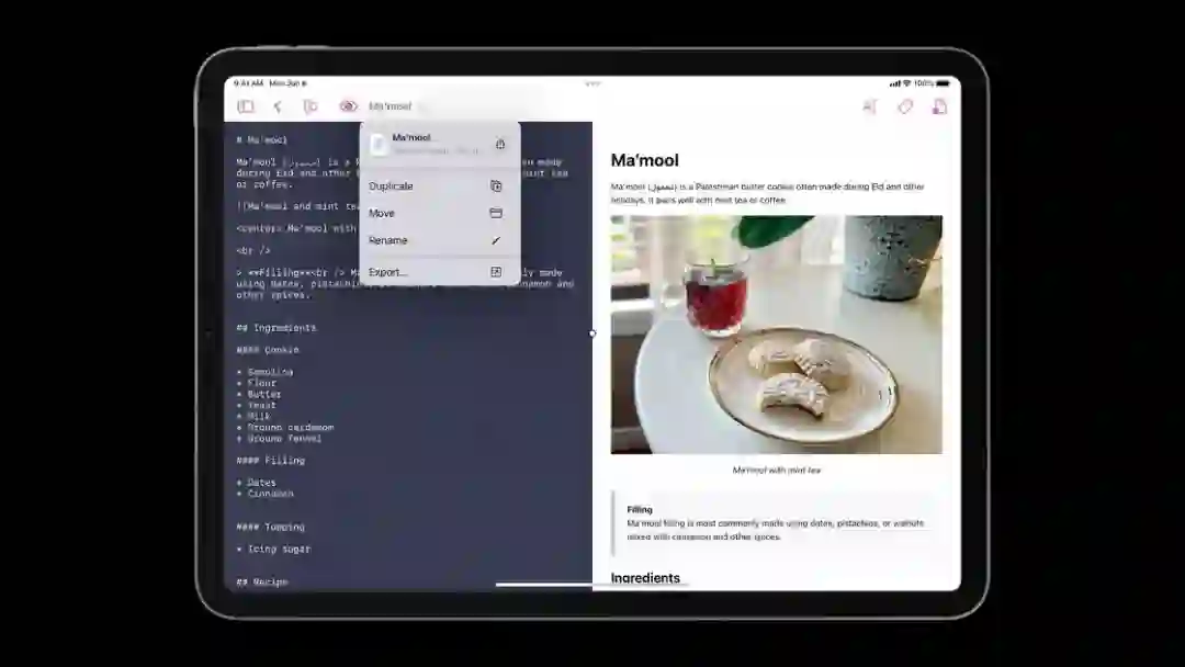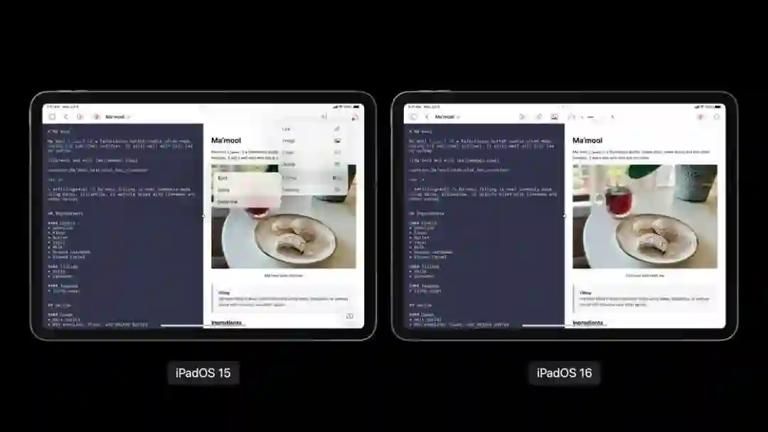 此外,iPadOS 16 也提供更多与桌面操作系统比肩的新功能,例如可自定义的工具栏、新的上下文菜单,还有文本查找和替换工具等等。