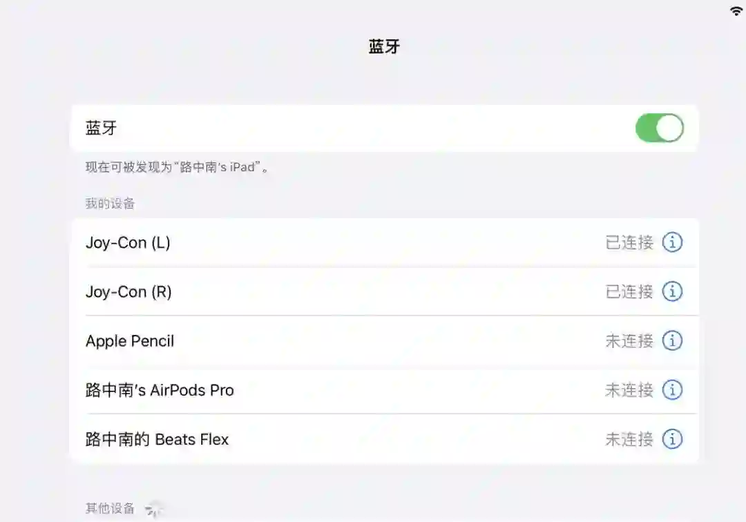 除了 DualShock 手柄和 Xbox 手柄之外,iPadOS 16 还支持 Joy Con 和 Switch Pro Controller。特别的,可以将两个 Joy Con 分别连接到 iPad,也可以将两个 Joy Con 合为一个手柄连接到 iPad。另外,iPadOS 16 也支持同时连接两个手柄。