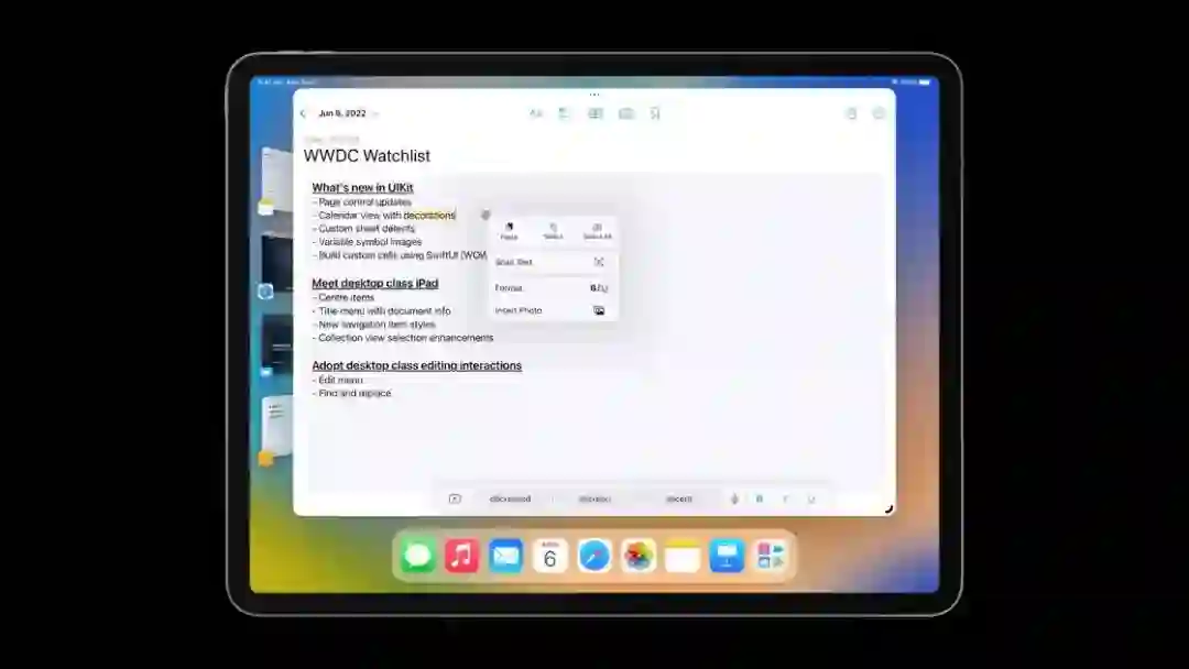 除了和 iOS 16 一样带来了 iMessage 信息撤回、视频实况文本、改善的聚焦搜索、FaceTime 接力等新功能,今年的 iPadOS 16 更新围绕着「iPad 灵活多用」这一主题,进一步将 macOS 上的多任务功能拉进 iPad,在提供了 iPad 专属体验同时保持了它的高度灵活性。