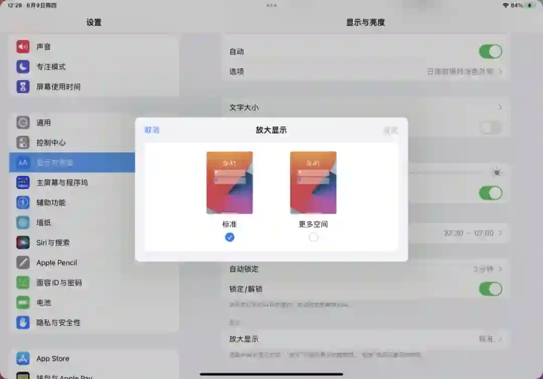 除了多任务处理操作方式发生了较大的变化, M1 芯片系列的 iPad 可以使用「缩放显示功能」调整屏幕上的像素密度以显示更多的内容。外接屏幕的显示分辨率也可以进行调整。经过测试,11 英寸 iPad Pro 在调整为「更多空间」后,屏幕分辨率变为 2778 * 1940,之前是 2388 * 1620。外接 27 英寸 4K 显示器时选择「更多空间」,屏幕甚至直接以 6K 分辨率渲染。