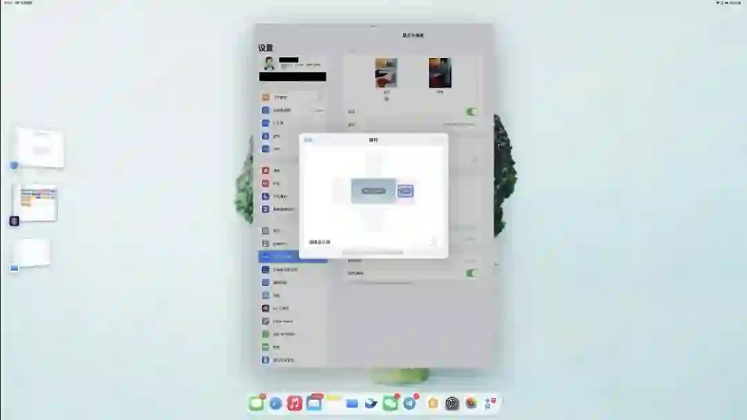 。将 iPad 插入外接显示器时,「台前调度」会自动在外接显示器上打开,此时可以使用键盘和指针设备进行各种窗口操作,也可以在屏幕之间拖动 app 窗口和文件。程序坞和 App 资源库也会直接在外接显示器上出现。