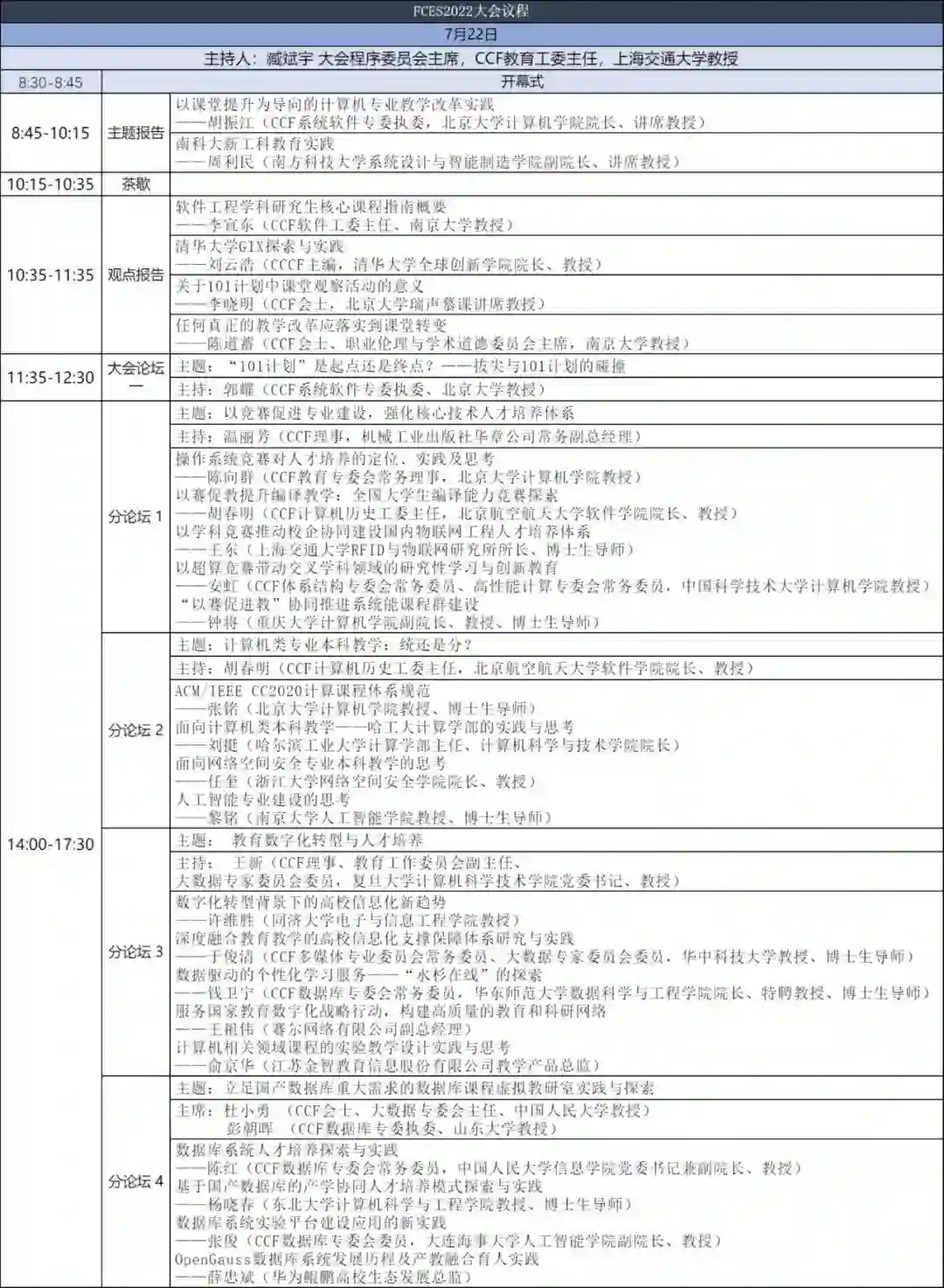 CCF未来计算机教育峰会(FCES 2022) 完整日程